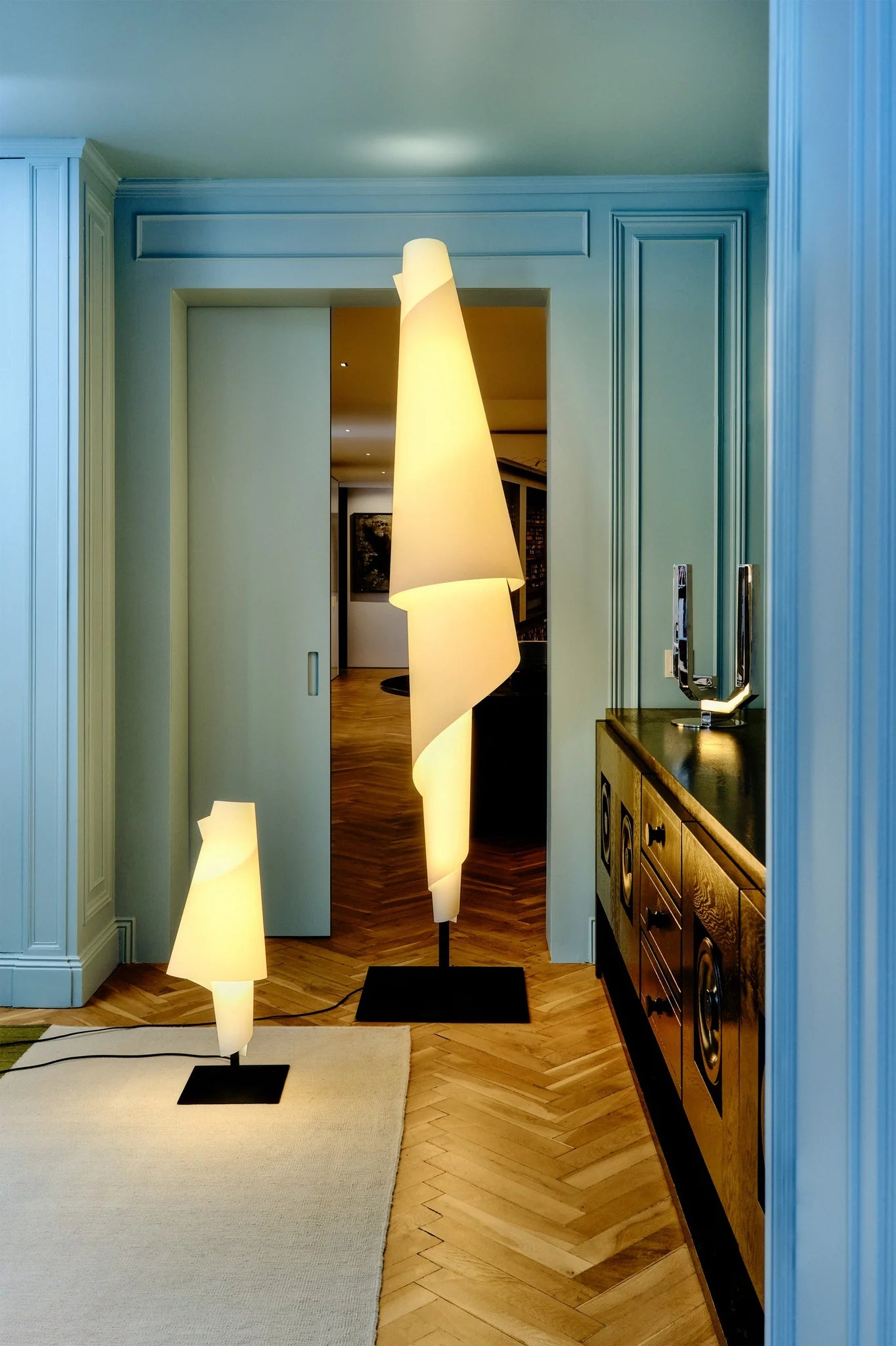Una luminaria de carácter escultórico diseñada por Josep Aregall, donde la luz y el gesto artesanal se encuentran. COSTURA se compone de un difusor que envuelve un mástil de acero con acabado negro texturizado, manteniendo su forma gracias a botones personalizados delicadamente atornillados en la parte posterior. Durante el montaje, la pieza evoca el meticuloso trabajo de un sastre, dando como resultado una luz cálida, envolvente y suavemente texturizada.