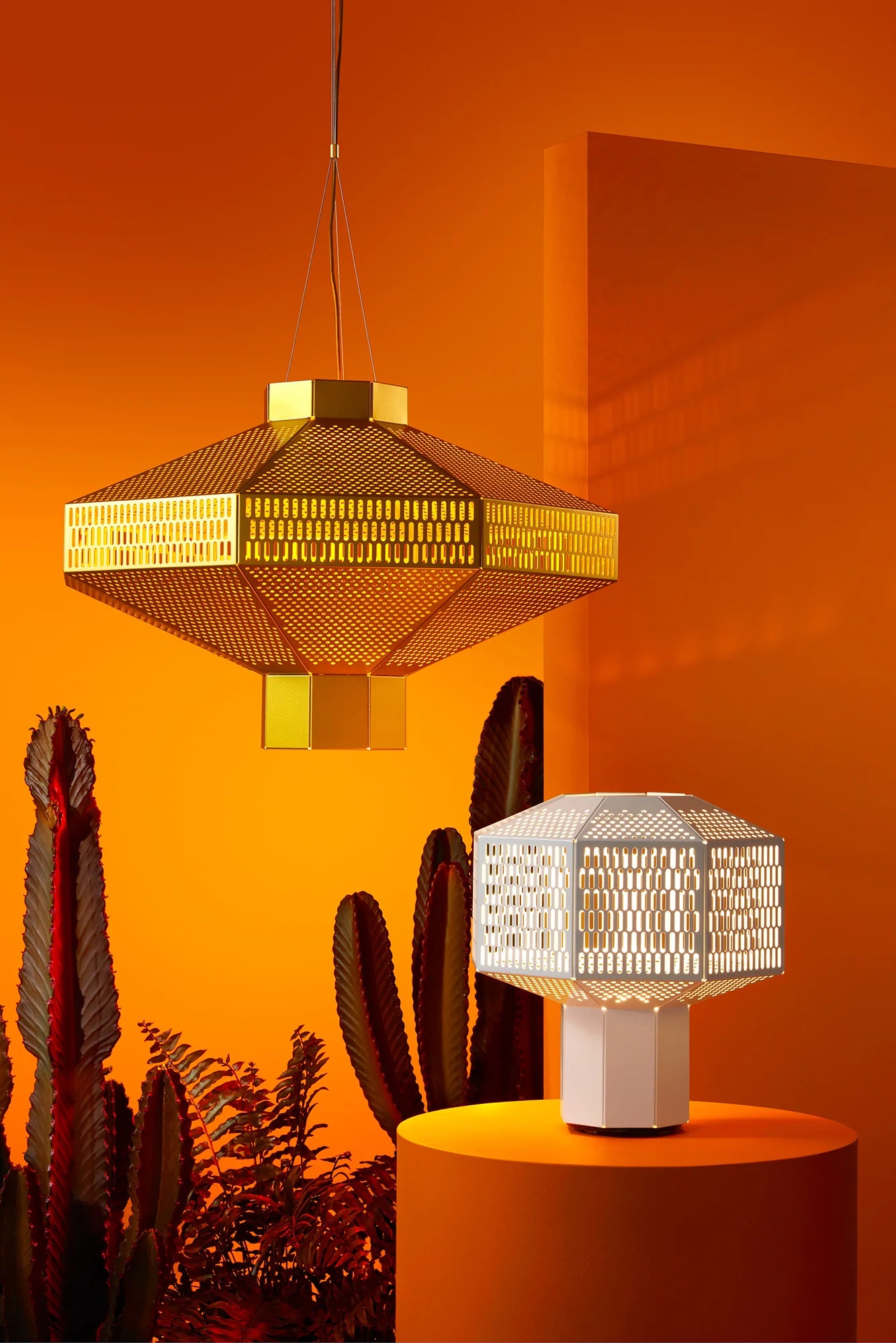 Una luminaria diseñada por Jaime Hayon que evoca de manera inmediata los paisajes silenciosos y la riqueza sensorial de los desiertos de Marruecos. MA-ROCK M reinterpreta la linterna marroquí tradicional desde una perspectiva contemporánea, combinando referencias culturales con un lenguaje de diseño actual. Su estructura de acero aporta solidez y presencia, dando como resultado una pieza escultórica que destaca tanto por su carácter evocador como por su fuerza estética.