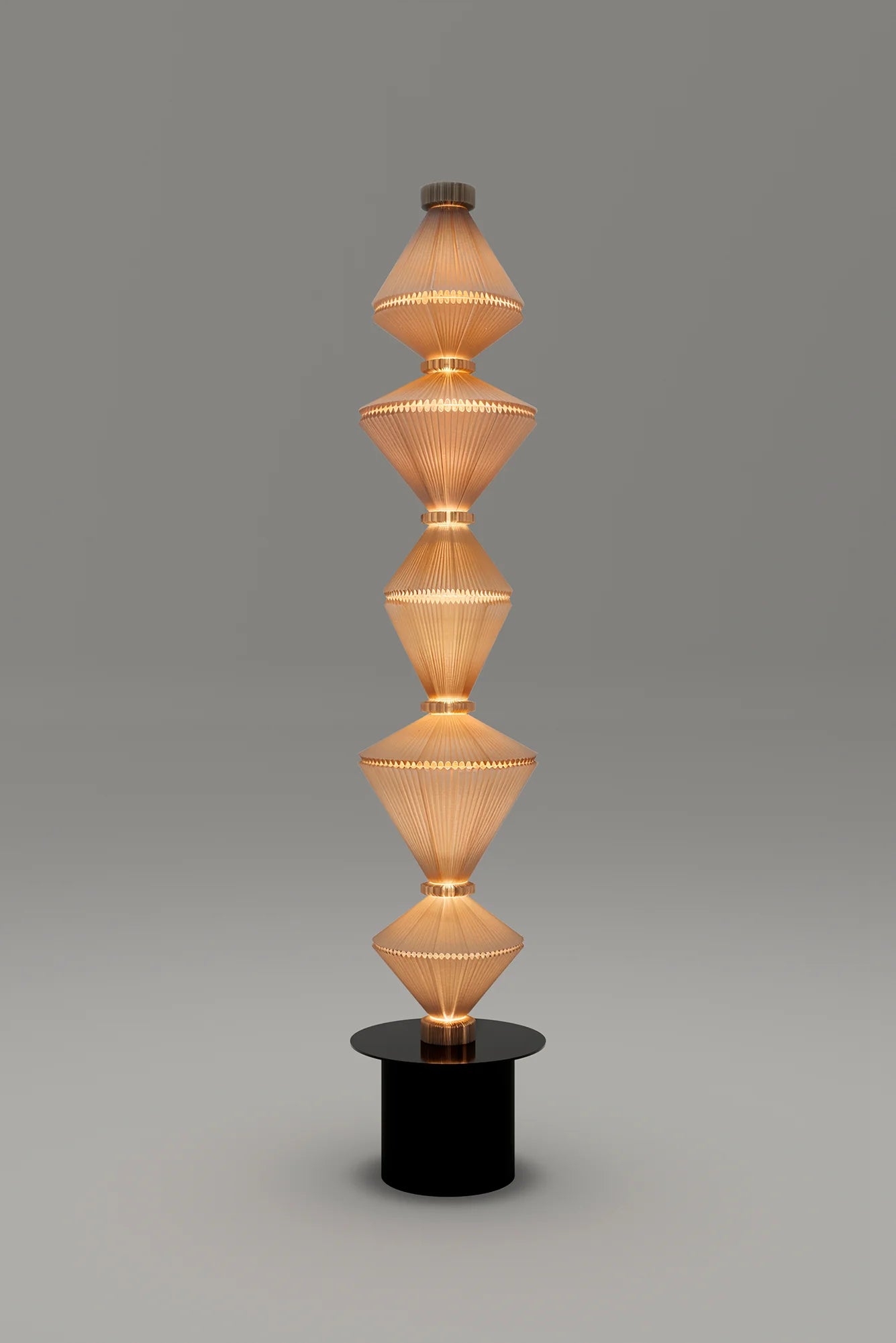 Una luminaria diseñada por Atelier Oï que se distingue por su carácter poético y su experiencia sensorial. OÏPHORIQUE P PE incorpora un elegante difusor textil que, al encenderse, entra en un movimiento hipnótico y delicado, transformando la luz en un elemento vivo dentro del espacio. Esta pieza va más allá de la iluminación funcional, creando una atmósfera envolvente y expresiva con una fuerte presencia escultórica.