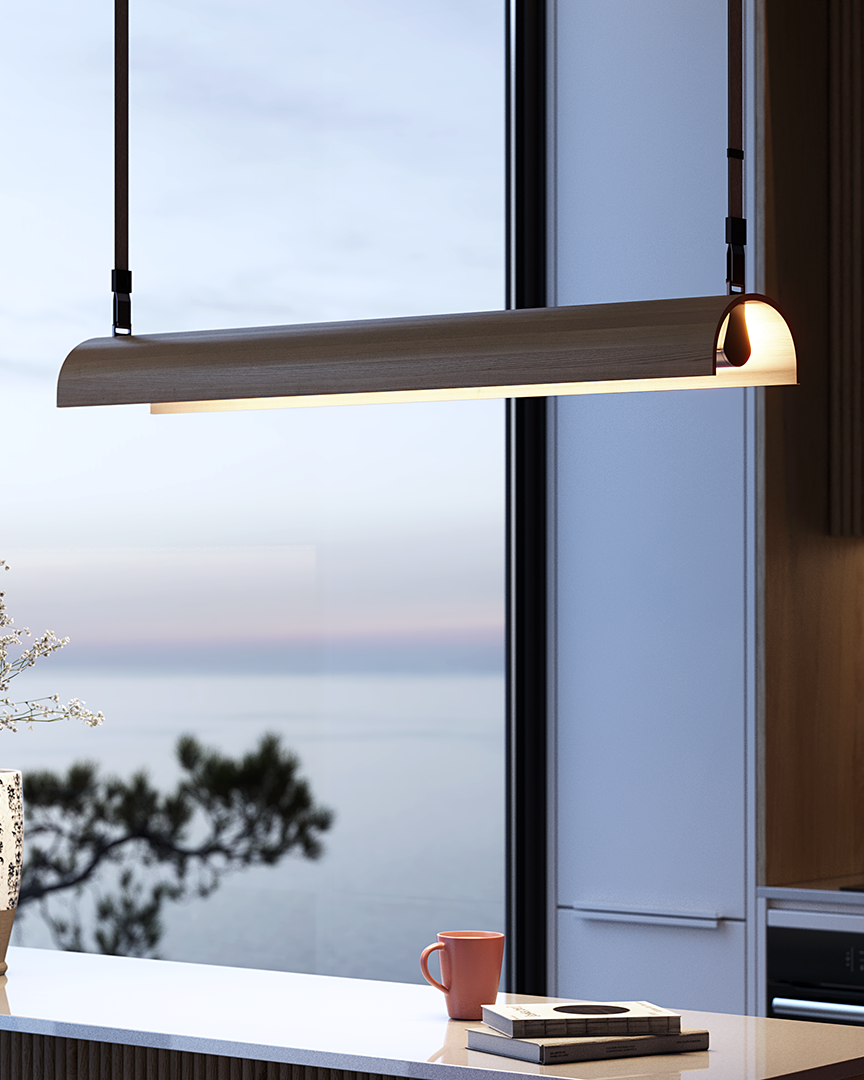 La Aluet S/100 surge del deseo de crear una lámpara lineal que combine presencia y materialidad. La incorporación de la madera aporta calidez y una experiencia sensorial única, convirtiéndola en una opción ideal para iluminar espacios rectilíneos, como mesas de trabajo.
