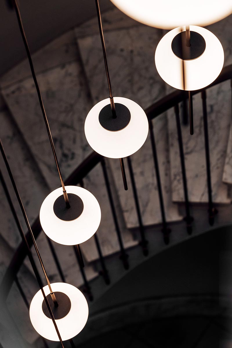 La colección se presenta en versiones de suspensión, suelo, sobremesa y una original versión colgante con conexión a pared. Gracias a su versatilidad, ofrece infinitas variantes capaces de resolver situaciones comunes en proyectos de iluminación: desde huecos de escalera, halls y grandes espacios, hasta restaurantes donde se busca una atmósfera íntima en cada mesa, todo ello partiendo de una única toma de corriente.