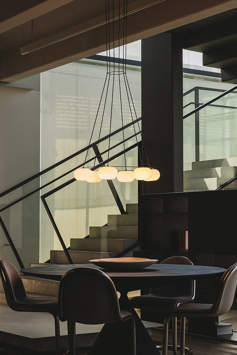 Knock combina dinamismo y coherencia para ofrecer soluciones de iluminación versátiles tanto en espacios contract como residenciales. La colección incluye un sobremesa, un colgante y tres apliques que también pueden instalarse como plafones de techo, lo que permite jugar con distintas versiones para crear ritmo visual de manera sencilla.