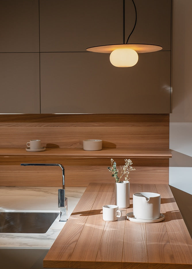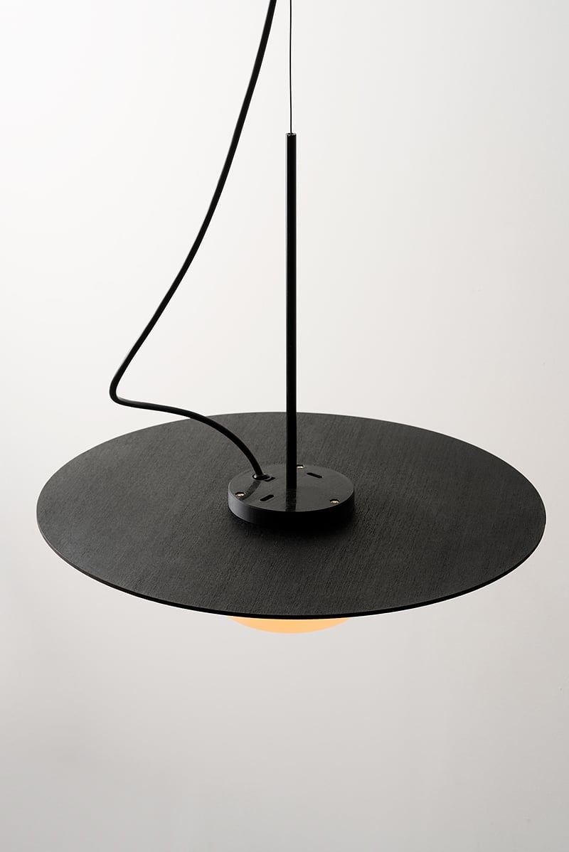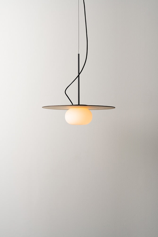 Su globo de vidrio soplado emite una luz cálida y amable, ideal para crear ambientes acogedores. La base reversible en madera de fresno añade un toque distintivo: por un lado lacada en negro y por el otro en acabado natural, lo que permite elegir la versión que mejor se adapte al espacio e incluso variar con el tiempo.