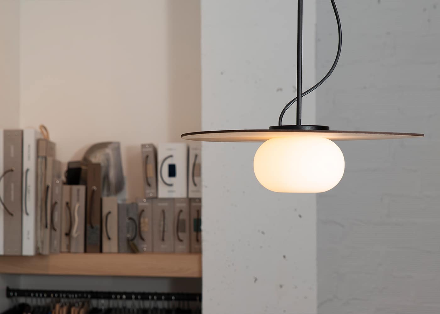 Knock es una serie lumínica versátil, diseñada para adaptarse a distintos espacios de contract o de hábitat con una misma colección. La línea incluye un sobremesa, un colgante y tres apliques que también pueden instalarse como plafones de techo, ofreciendo múltiples combinaciones que generan dinamismo sin perder coherencia estética.