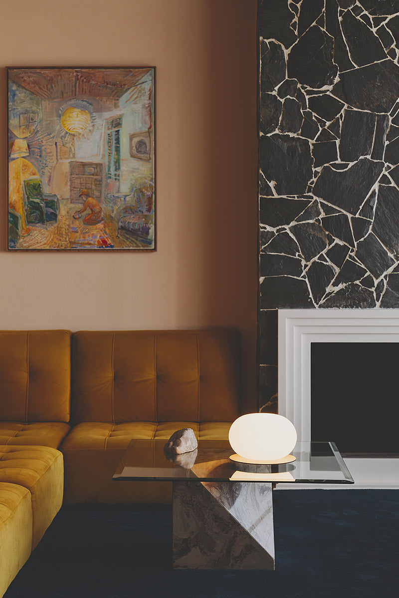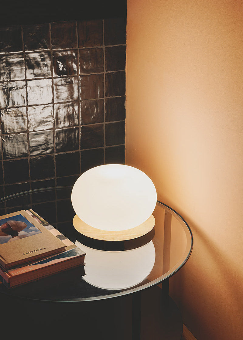 La luz cálida y envolvente del globo de vidrio soplado aporta cercanía y confort, mientras que su base reversible en madera de fresno —natural por un lado y lacada en negro por el otro— añade un toque de sofisticación adaptable al paso del tiempo. Su sistema de muelles asegura un montaje ágil y sencillo, convirtiendo cada pieza en una fusión perfecta de funcionalidad y diseño refinado.