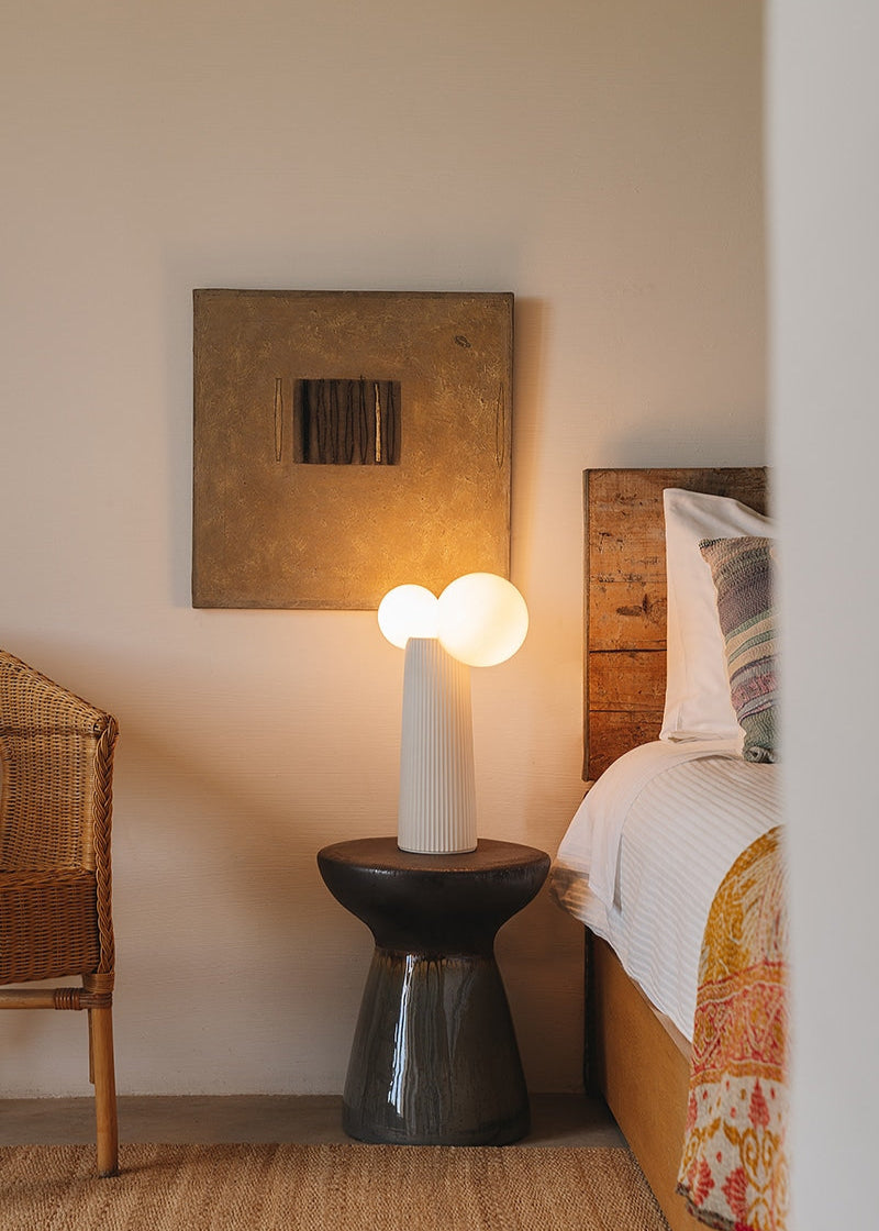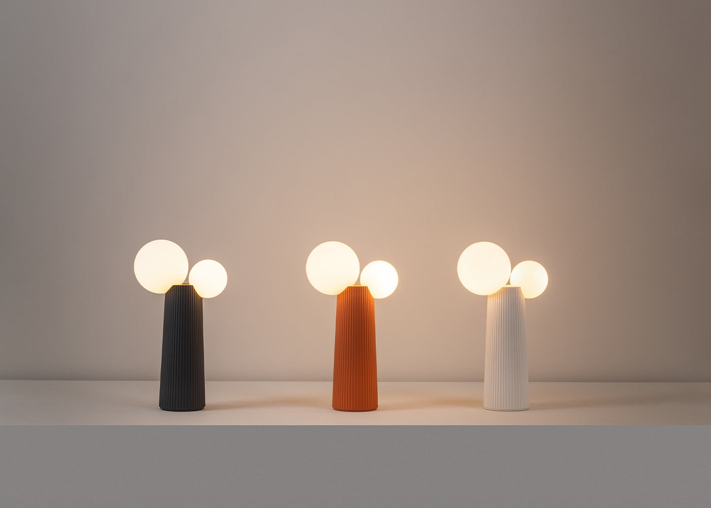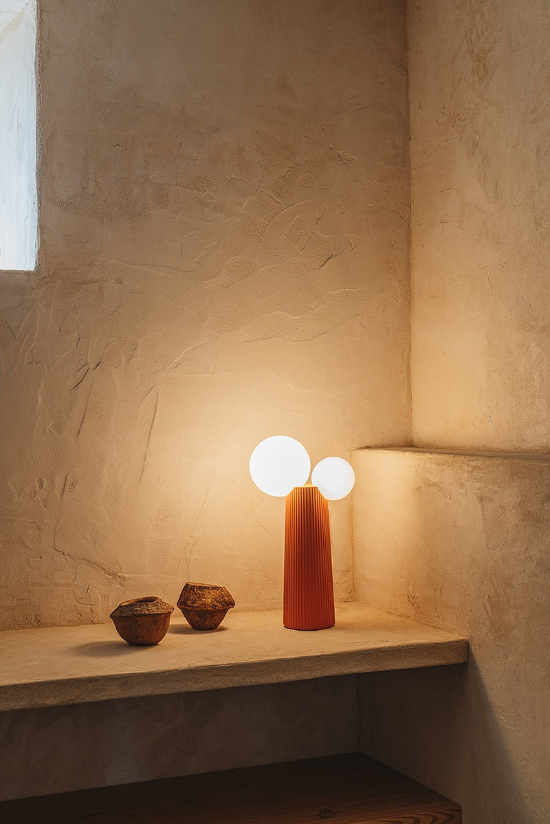 La serie incluye un sobremesa, un aplique y un plafón, disponibles en tres exclusivos acabados. Su versatilidad permite integrarla tanto como pieza individual como en combinaciones, adaptándose con elegancia a espacios residenciales o contract y realzando cualquier rincón con autenticidad y estilo.
