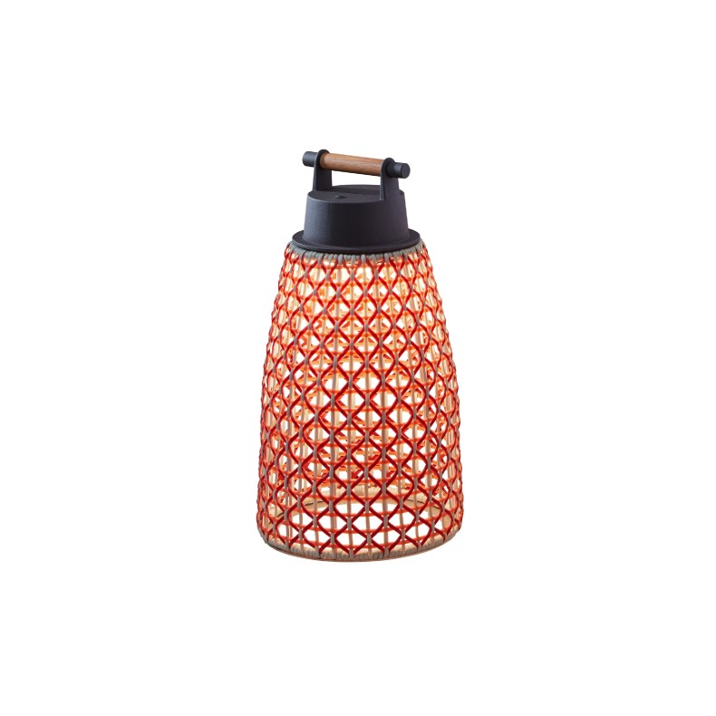 Su pantalla tejida a mano celebra el oficio artesanal, combinando diferentes tramas, colores y aberturas que transforman la luz en una textura viva. Con Nans Portable, la tradición se hace móvil: una lámpara que evoca la serenidad del mar y la calidez de la fibra natural, creada para habitar tanto interiores como exteriores con una presencia poética y funcional.