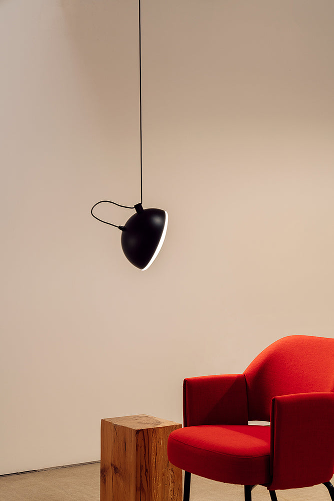 Su articulación inteligente permite inclinar los colgantes y dirigir la luz de forma directa o indirecta, adaptándose a distintas necesidades lumínicas. La colección ofrece tres versiones —con uno, dos o tres colgantes— que pueden combinarse dinámicamente en un mismo espacio, creando ritmo y movimiento en la iluminación.
