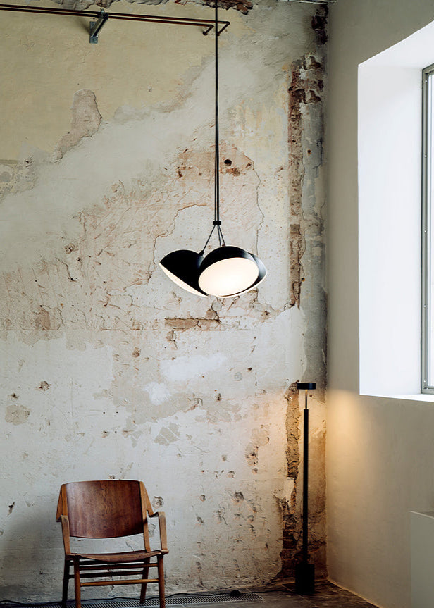El juego entre inclinación y articulación convierte a Nod en una lámpara ideal para espacios contract, gracias a su versatilidad y presencia. El peso y volumen de cada colgante generan un fuerte impacto visual, aportando potencia y carácter al ambiente.