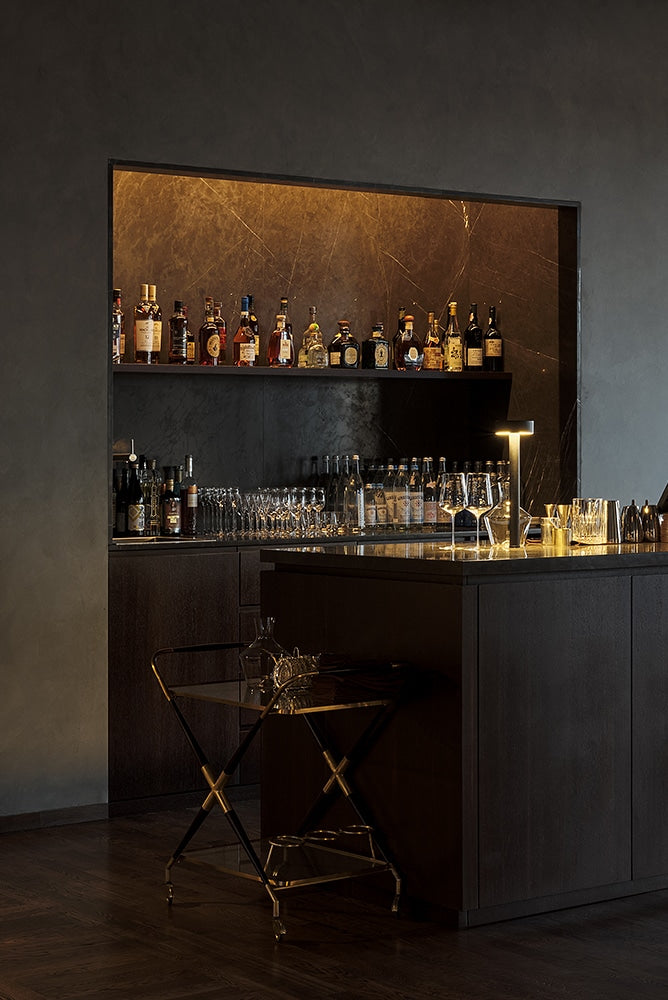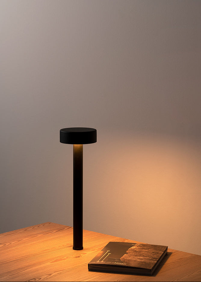 Disponible en tres alturas y en color negro, su diseño combina líneas rectas, formas cilíndricas y una base circular ligera. En la versión de sobremesa, la base se transforma en una sutil bandeja, perfecta para complementar el entorno. Peak Lane aporta presencia discreta y elegancia esbelta, llenando los espacios de luz sin restarles ligereza ni amplitud.