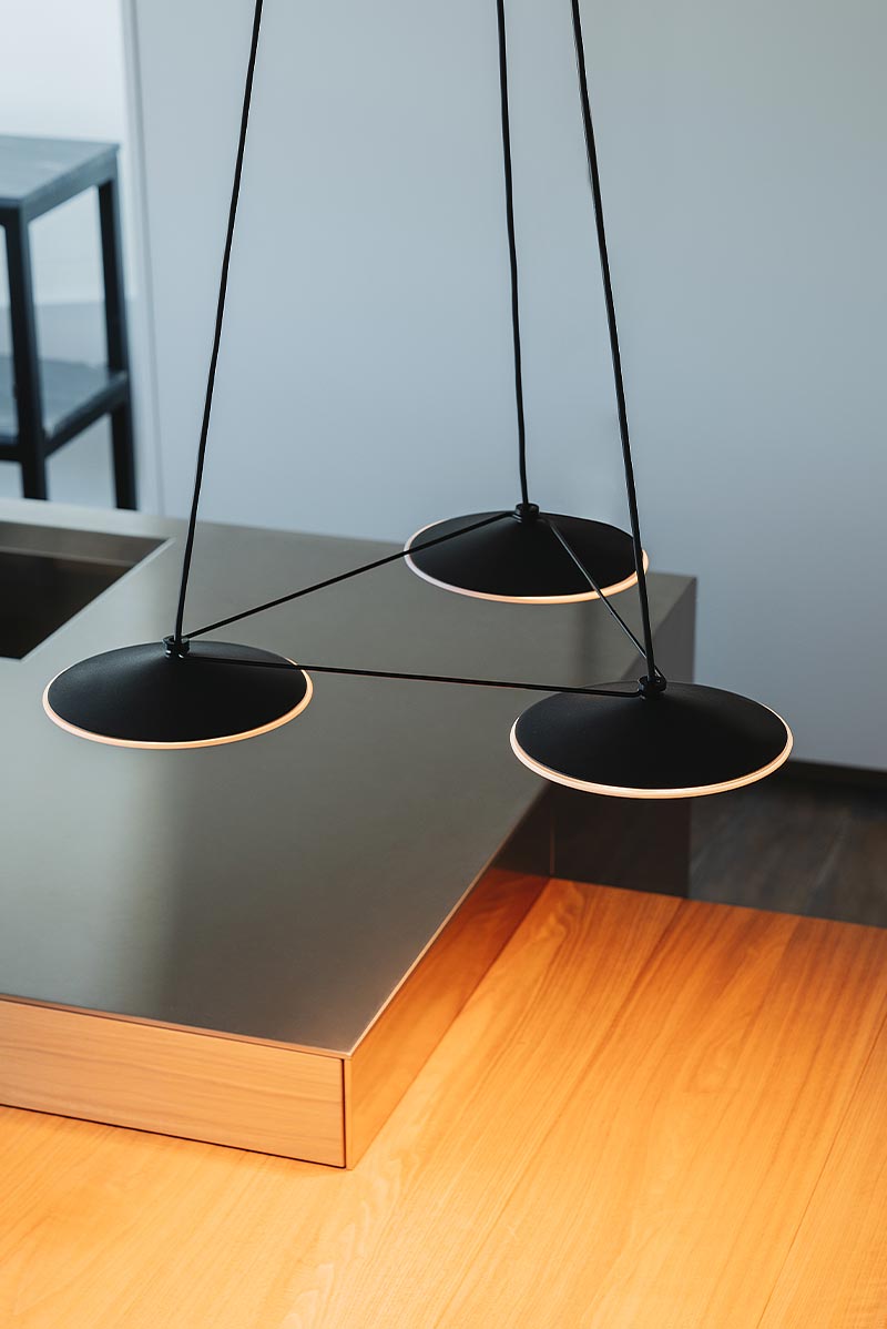 Con líneas sutiles y formas sobrias, Pla es una luminaria diseñada para iluminar de forma indirecta, creando ambientes cálidos y acogedores. Sus acabados en metal y el reflejo de sus tres LEDs generan una luz íntima que realza la atmósfera de cualquier espacio.