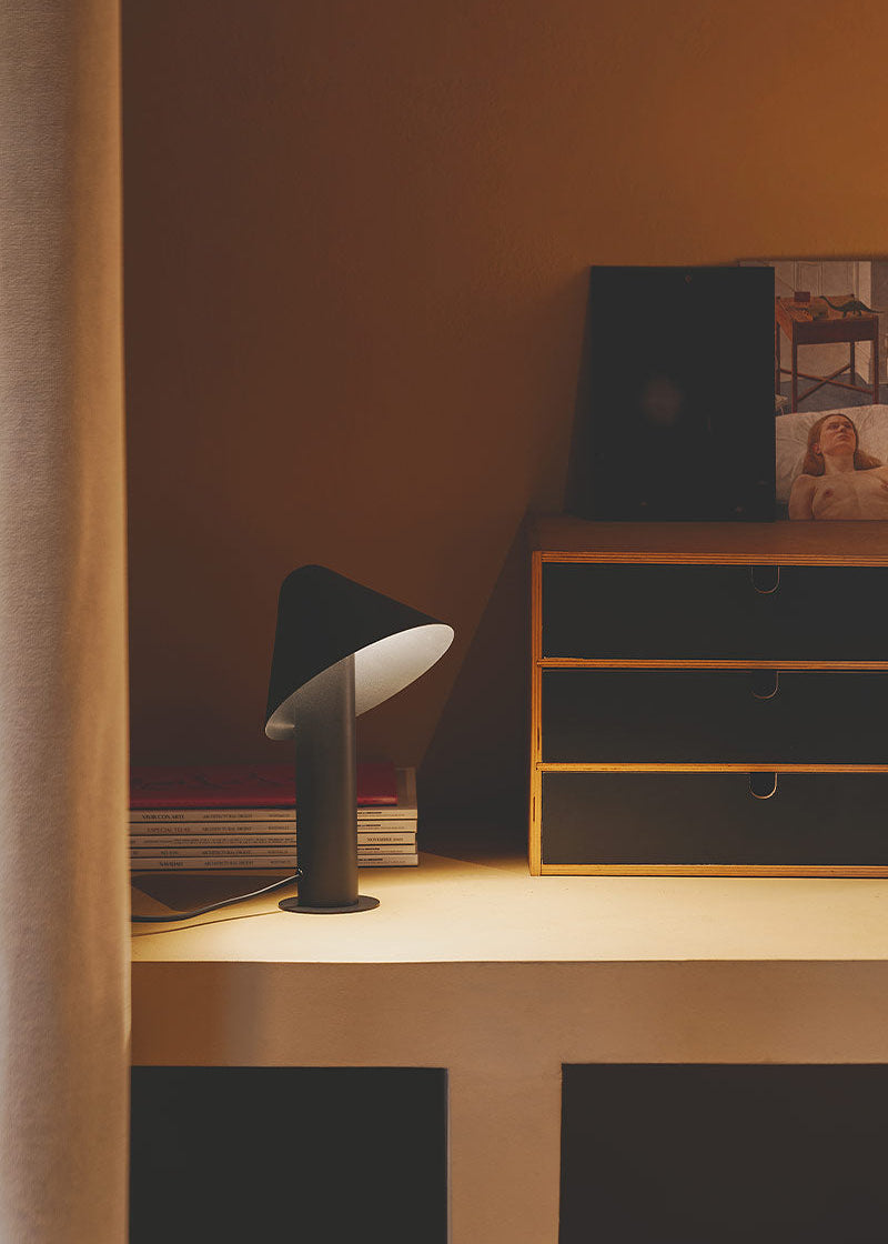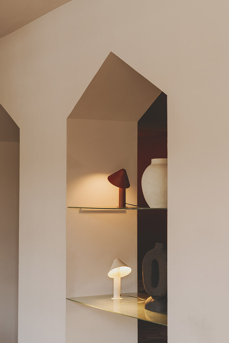 Como una seta que surge en el bosque, Shita se eleva con naturalidad sobre cualquier superficie. Su diseño orgánico y minimalista, elaborado en acero, se traduce en una luminaria elegante y contemporánea que aporta calidez a cada rincón.