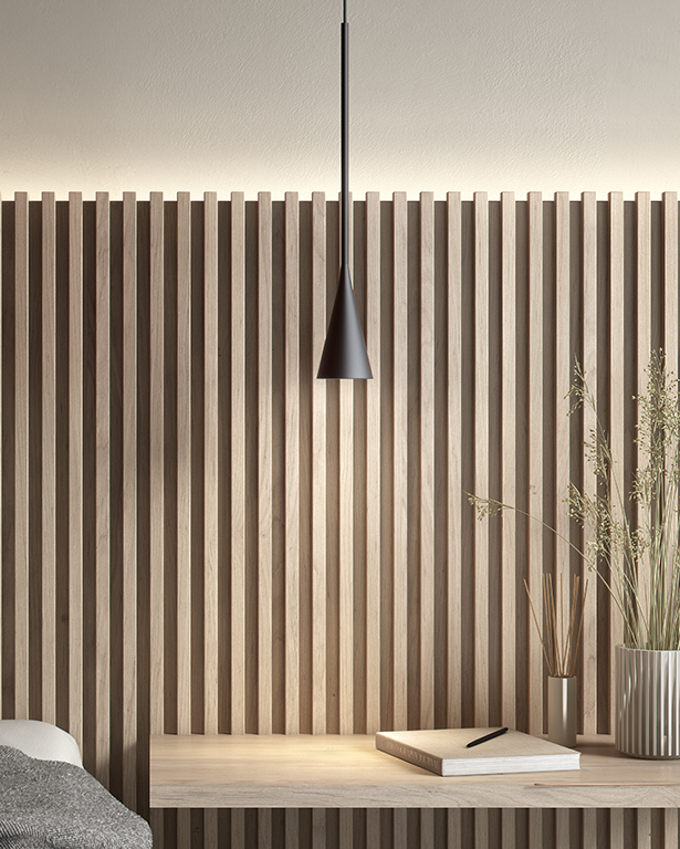 Este diseño es un ejercicio de síntesis y precisión, donde la función determina la forma, logrando un resultado elegante y refinado. La campana simboliza un fragmento de oscuridad del que emerge la luz, ofreciendo una iluminación directa desde arriba. Su pureza formal permite múltiples combinaciones y aplicaciones, convirtiéndola en una pieza adaptable y expresiva dentro de cualquier espacio.