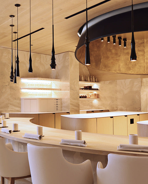 Concebidas para aportar sofisticación y ligereza visual, las lámparas Slend 02 destacan por sus formas esbeltas y sutiles, capaces de adaptarse a diferentes composiciones mediante la combinación de sus tres formatos. Pueden disponerse de manera individual para un efecto limpio y elegante, o agruparse en distintos niveles para generar composiciones más expresivas y contemporáneas. Fabricadas en aluminio torneado, integran una bombilla LED fácilmente reemplazable en su interior. Su luz directa, con un ángulo de apertura de 100°, proporciona una iluminación precisa y uniforme, ideal para realzar mesas de restaurante, mostradores o espacios arquitectónicos como centros de escaleras.