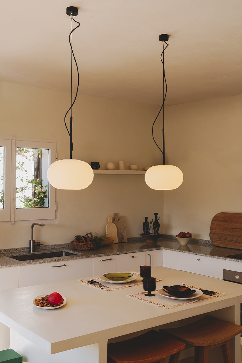 Disponible en cuatro versiones —pie de salón, sobremesa, aplique/plafón y colgante—, Span permite combinar diferentes piezas para aportar ritmo y carácter a cualquier espacio. Su acabado en color negro refuerza su versatilidad, adaptándose con elegancia a múltiples estilos y rincones del hábitat.