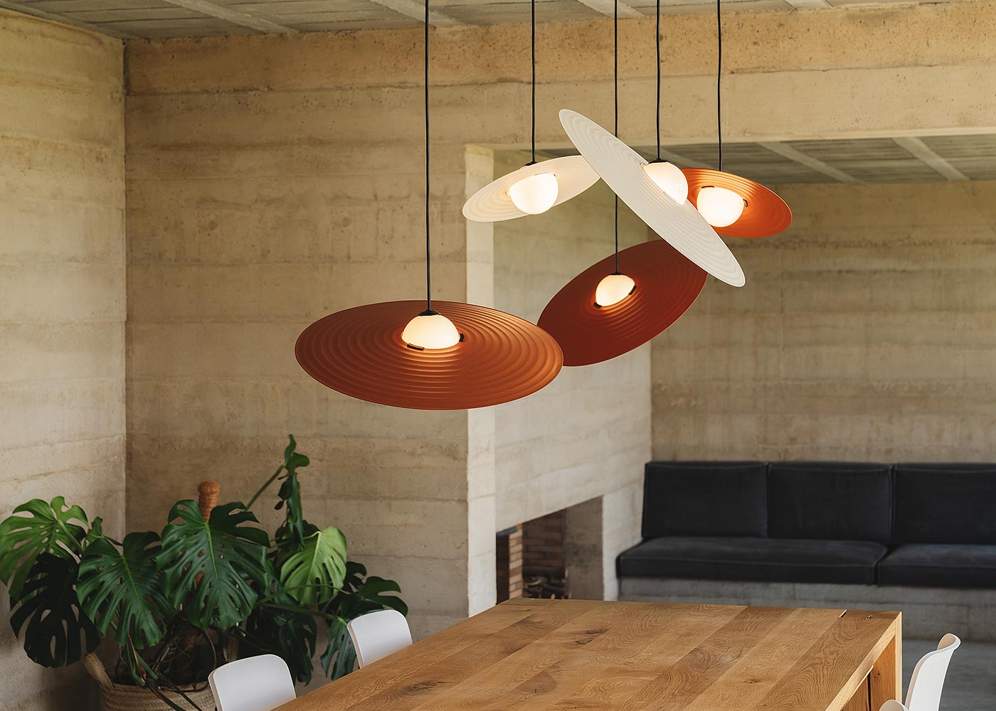 La colección incluye cuatro versiones distintas: pie, dos tipos de pantallas (una con imán y otra con encaje), aplique, sobremesa alto y sobremesa bajo, cada una disponible en dos tamaños y tres colores, lo que permite una fácil adaptación a espacios contract o residenciales. Con Symphony, cada espacio puede convertirse en un escenario de luz elegante y dinámico.