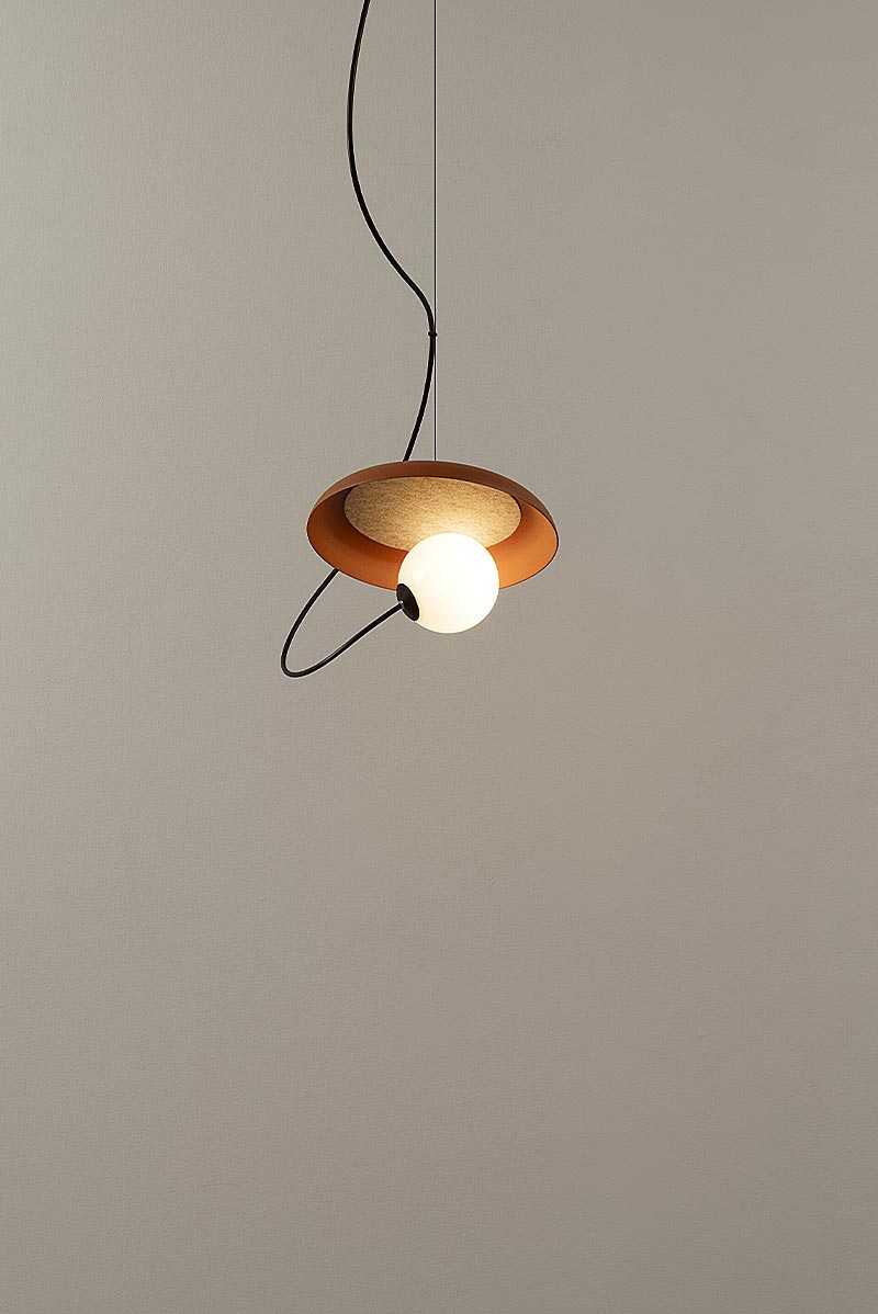 Disponible en tres colores y en versiones de colgante, pie y aplique, esta colección es ideal para proyectos contract donde se busque aportar ritmo y dinamismo al espacio. Cada pieza combina diseño, funcionalidad y un toque de ingenio, ofreciendo iluminación elegante y adaptable.
